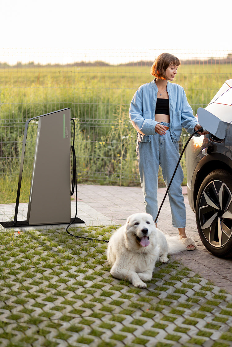 Acest design integrează perfect stația de încărcare în peisajul casei tale, transformând-o într-un element central funcțional și artistic, creat special pentru proprietarii de vehicule electrice.